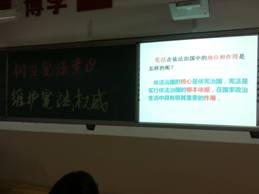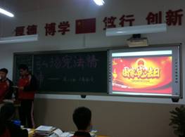 5日下午第十节课,全校以班级为单位组织召开了内容丰富,形式多样的“宪法日”主题班会活动。同学们通过法律知识竞赛、观看法律电影、辩论赛、法制诗歌朗诵、小品表演、案例分析、自由讨论等形式宣传宪法知识。