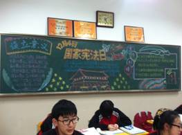 各班级还利用班级的主题教育黑板,进行宪法宣传活动。同学们用自己的笔墨书写对宪法的认识和感悟,进一步强化了法律意识,形成了自觉学法、守法、用法的良好氛围。