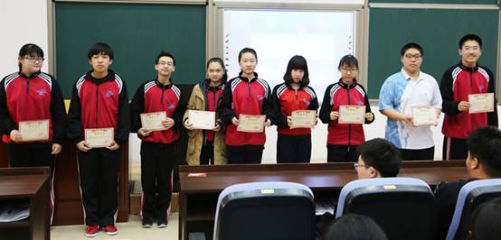 The vice principal of our school Yan Li presented the awards and honor certificates for the first group 16 students who had participated in the activities and summarized the meaningfulness of this activity. At last Yan Li made the specific requirements for the next activity based on the actual situation of our school.