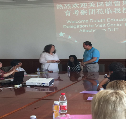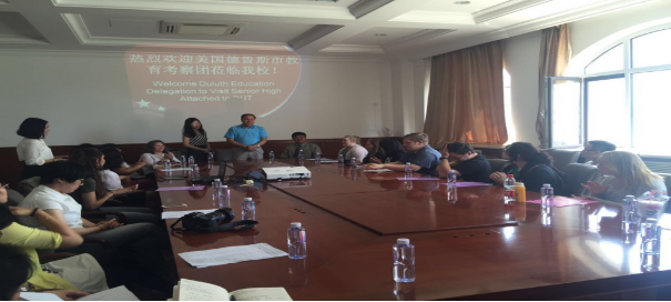 6月17日,美国大学理事会副主席王湘波博士、学校友好校明尼苏达州德鲁斯市东部高中、丹菲尔德高中师生代表团到学校进行文化交流活动。