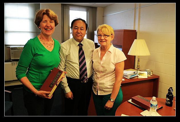 图10 与宾州州立大学招办主任Cathy博士和国际部主任JoAnn女士会谈结束后互赠礼物