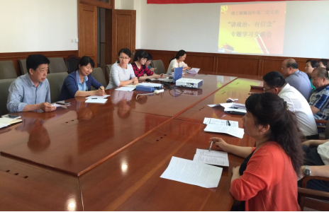 6月8日下午4.05时,附属高中高一、高二、国际部党支部按照党总支要求,分别召开了“讲政治、有信念”专题学习交流会。 校领导袁晓东、王跃进等分别深入各党支部作为普通党员参加了研讨并发言。