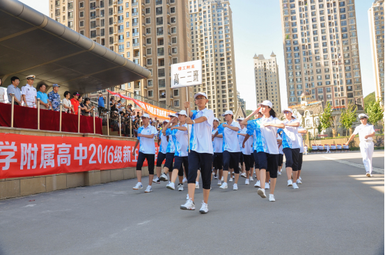 8月29日下午,我校在操场隆重举行2016届新生阅兵式汇报表演及军训闭营仪式。校长王跃进、91550部队的首长和教官,学校班子成员及新生家长代表一起观看了新生队列的精彩汇报表演。