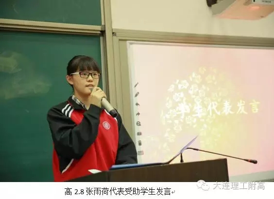 高2.8班张雨荷代表受助学生发言。张雨荷对国家所给予的爱心抚慰感激不尽,决心全身心投入学习状态,努力奋斗,在以后的社会生活中用自己的能力回馈社会!