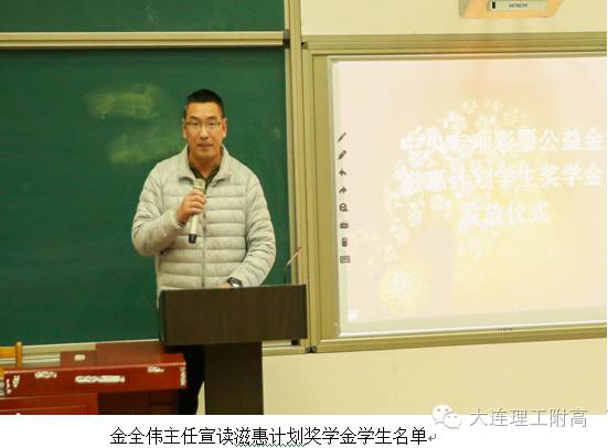 2016年12月1日下午4点,在我校A楼1楼会议室举行了2016年“中央专项彩票公益金滋惠计划”学生奖学金发放仪式。石磊副校长、金全伟主任以及受到资助的全体学生和家长出席了发放仪式。